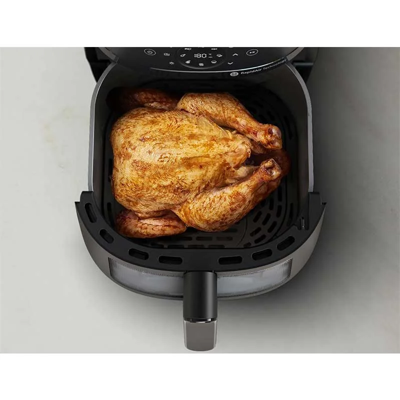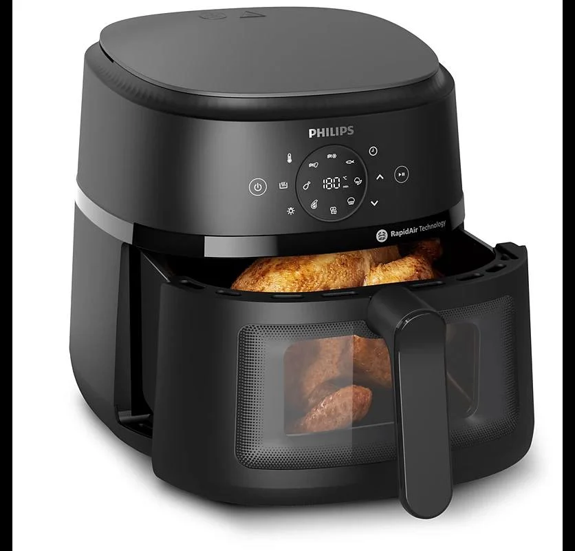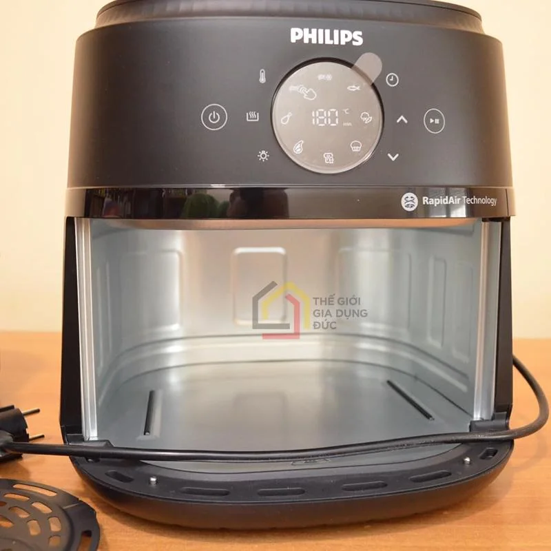 یکی از مهم ترین مزیت های سرخ کن فیلیپس برخورداری از طراحی بسیار شیک و جذاب آن است. بدنه این دستگاه از جنس پلاستیک بسیار با کیفیت و مقاومی ساخته شده، که با رنگ مشکی می تواند جلوه زیبایی به آشپزخانه شما ببخشد. همچنین محفظه داخلی یا همان کاسه سرخ کن فیلیپس NA230 از جنس روکش نچسب با شکلی مربع بوده که به راحتی می توانید بعد از استفاده آن را شست و شو دهید. در روی درب این دستگاه نیز یک پنجره شفاف تعبیه شده که می توانید روند پخت را کنترل کرده و زیر نظر داشته باشید. به علاوه در قسمت جلویی این دستگاه یک نمایشگر لمسی جهت انتخاب عملکرد، زمان، دما و … طراحی شده که کار با سرخ کن را بسیار راحت تر کرده است.