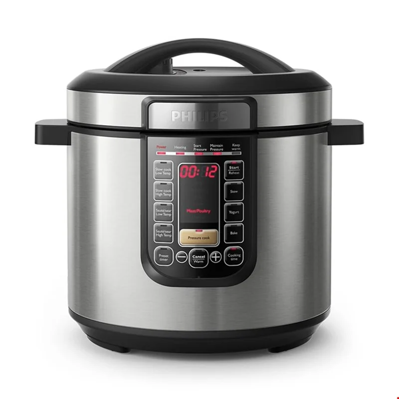 اگر به اصلیترین ویژگی مولتی کوکر فیلیپس اشاره کنیم، بیشک طراحی جذاب آن میباشد. بدنه این دستگاه از جنس استیل ضد زنگ و بسیار مقاوم ساخته شده است که در برابر هر ضربهای محکم بوده و تحمل هر گونه فشار و دما را دارد. ظرف داخلی این مولتی کوکر از جنس آلیاژ آلومینیوم با دوام ساخته شده است که گرما را به بهترین شکل ممکن پخش میکند. روکش دیگ این دستگاه به صورت ضد خراش و نچسب ساخته شده است که علاوه بر عدم چسبندگی مواد غذایی، شستشوی دستگاه را نیز آسان میکند. همچنین درب داخلی مولتی کوکر برند فیلیپس به راحتی جدا میشود و قابل شستشو است.