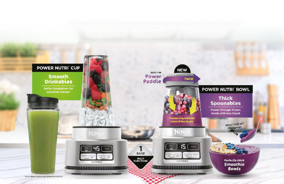 یک پایه با چند کاره. فنجان های Power Nutri™ برای نوشیدنی های صاف. کاسه های Power Nutri™ با مایع کمتری برای کاسه های اسموتی ضخیم از بین می روند. 1100 وات
