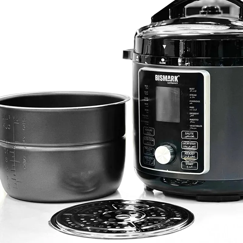 دارای سبد بخارپز / عملکرد گرم نگه داشتن غذا / قابلیت تنظیم برنامه پخت زمان دار 24 ساعته / 14برنامه پخت: سرخ کردن، بخارپز، ته دیگ ، سوپ ، کیک