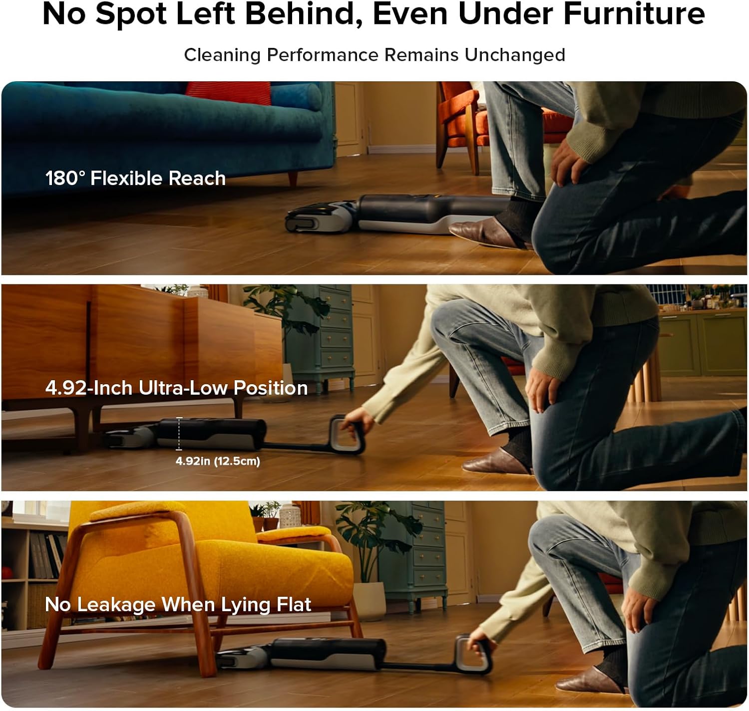 مجهز به طراحی تخت و کمارتفاع برای نظافت زیر مبلمان (FlatReach)