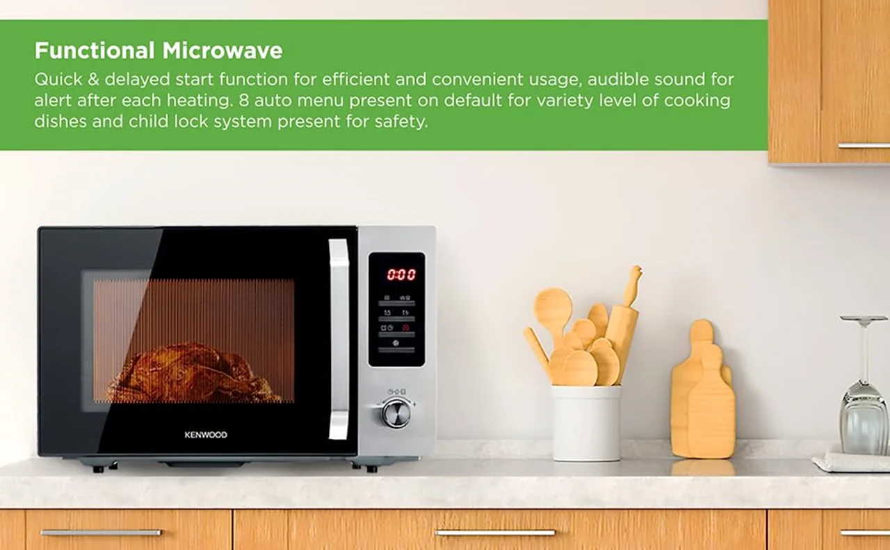 ماکروویو چند منظوره مدل MWM30 از کمپانی کنوود بوده که به علت با کیفیت بودن محصولاتش یکی از به نام ترین برندها در زمینه تولید لوازم خانگی است. این ماکروویو بر اساس استاندارد های کشور انگلستان در کشور چین تولید می شود. رنگ استیل و مشکی این ماکروویو ظاهر بسیار شیک و جذابی به آن بخشیده است. ماکروویو MWM30 دارای قابلیت ماکرو ، گریل و پخت ترکیبی یا Combination (به طور خلاصه: کمبی) می باشد. عملکرد پخت ترکیبی به معنی استفاده هم زمان این دستگاه از حرارت المنت های گریل و اشعه ماکرو برای پخت غذاست. ظرفیت این دستگاه بسیار چشمگیر و برابر 30 لیتر بوده و این حجم زیاد کاملا برای خانواده های پر جمعیت مناسب می باشد. توان ورودی ماکروویو MWM30 به طور کلی بین 850 تا 900 وات و توان خروجی آن بسته به نوع کارکرد آن در حالت ماکرو بین 1400 تا 1450 وات و در حالت گریل بین 900 تا 1000 وات می باشد.